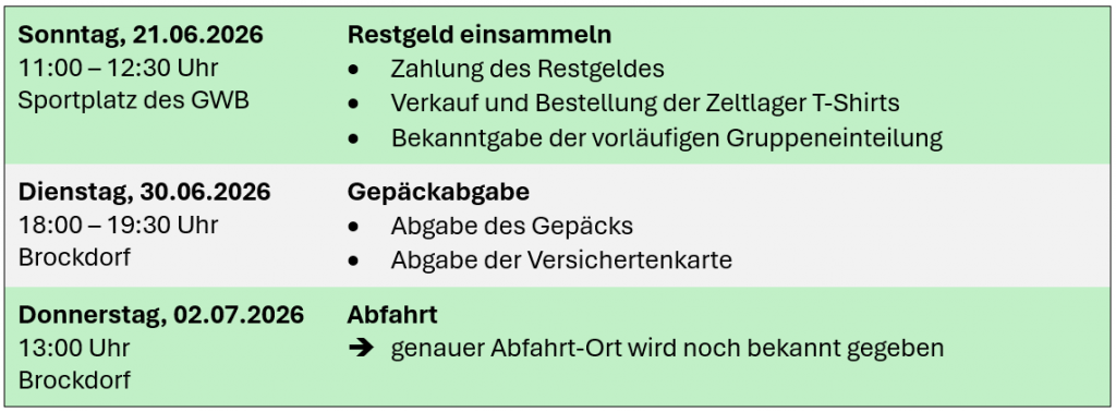 Das Zeltlager 2026 findet vom 02.07. bis 10.07.2026 in Almke statt.